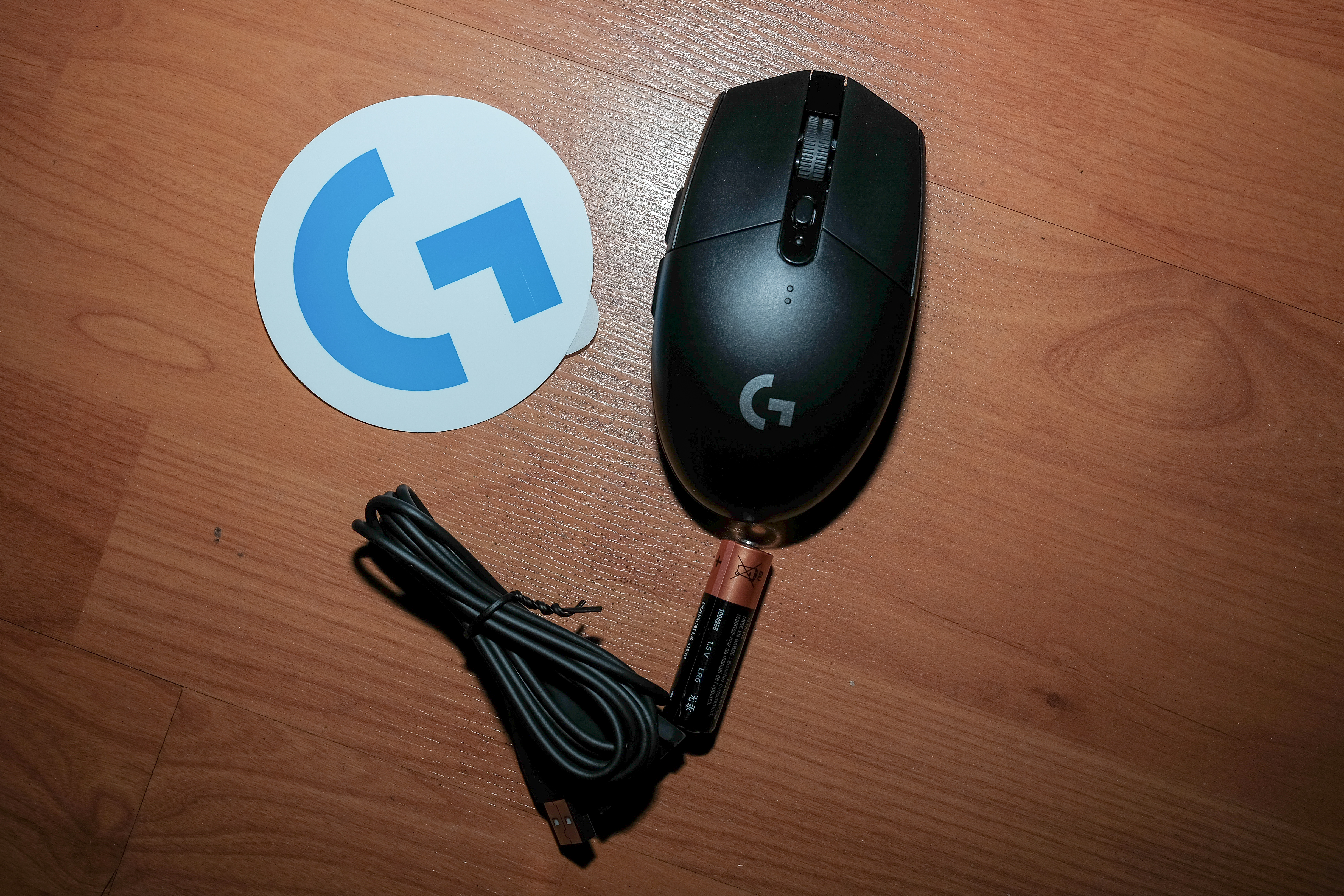 구성품은 간단하다. 마우스 본체와 배터리 1개. 그리고 USB 연장선과 스티커까지
