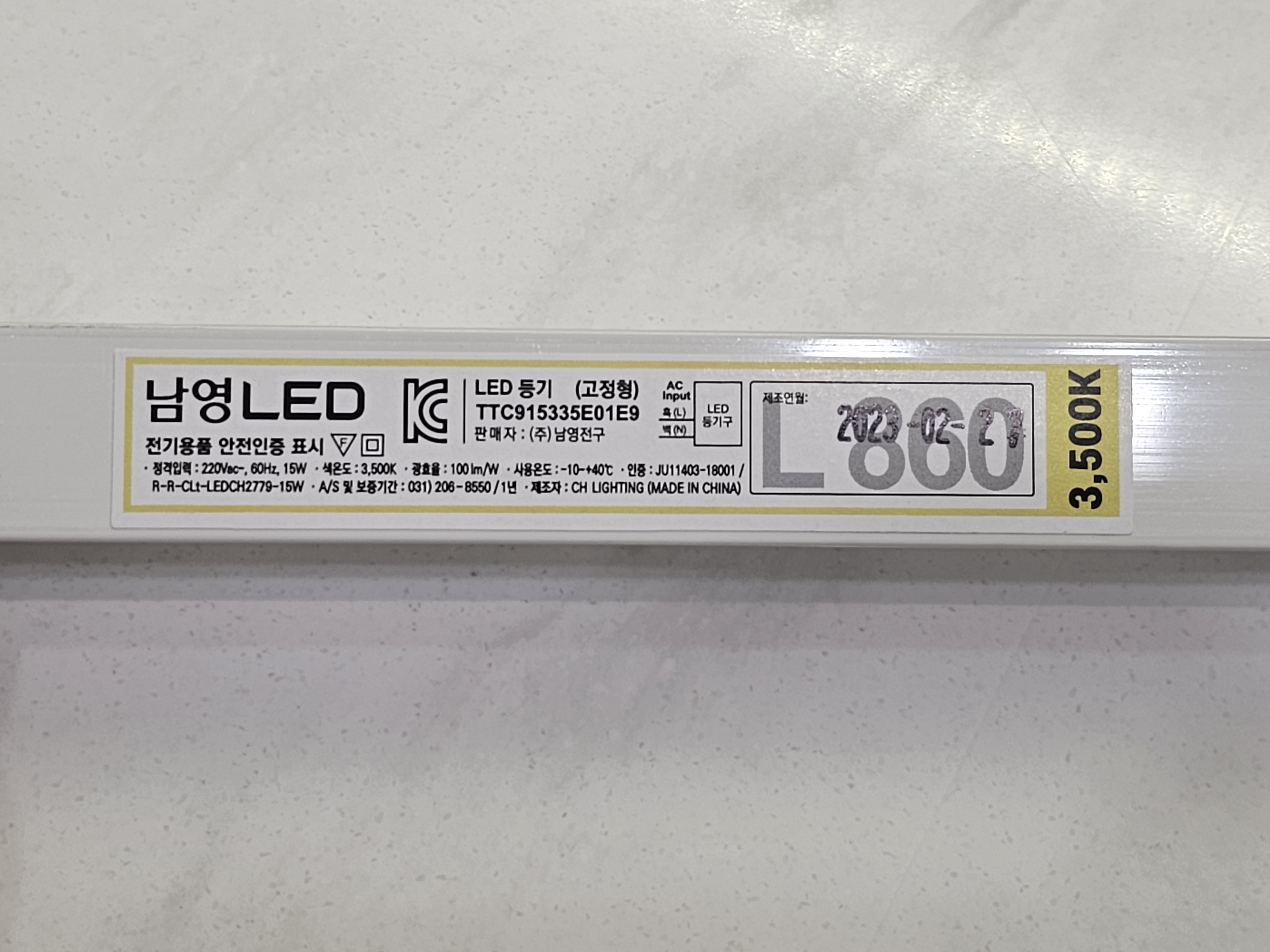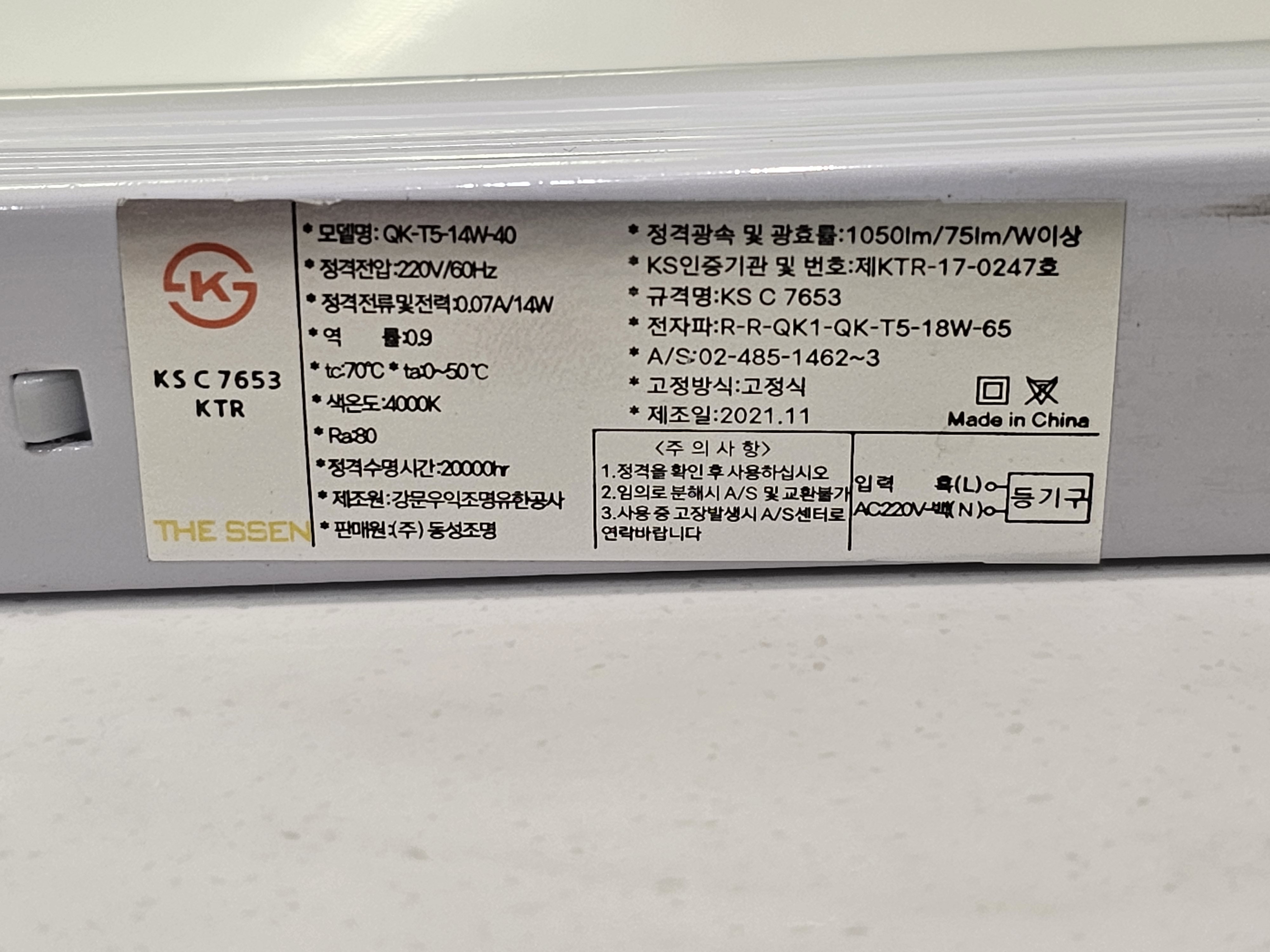 가까이서 보니 제품은 '더쎈' 조명 제품이고 T5 조명 4000K 90cm 제품입니다.